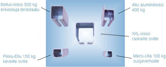 | | lev | kork | Erikoispyörästöt, kiskot, | Allu-kisko | 59 x | 66+30 (laippa) | mutkat, sähkökaapelivaunut | Allu-pyörästö:kiinteä M16-kierre 150 mm |